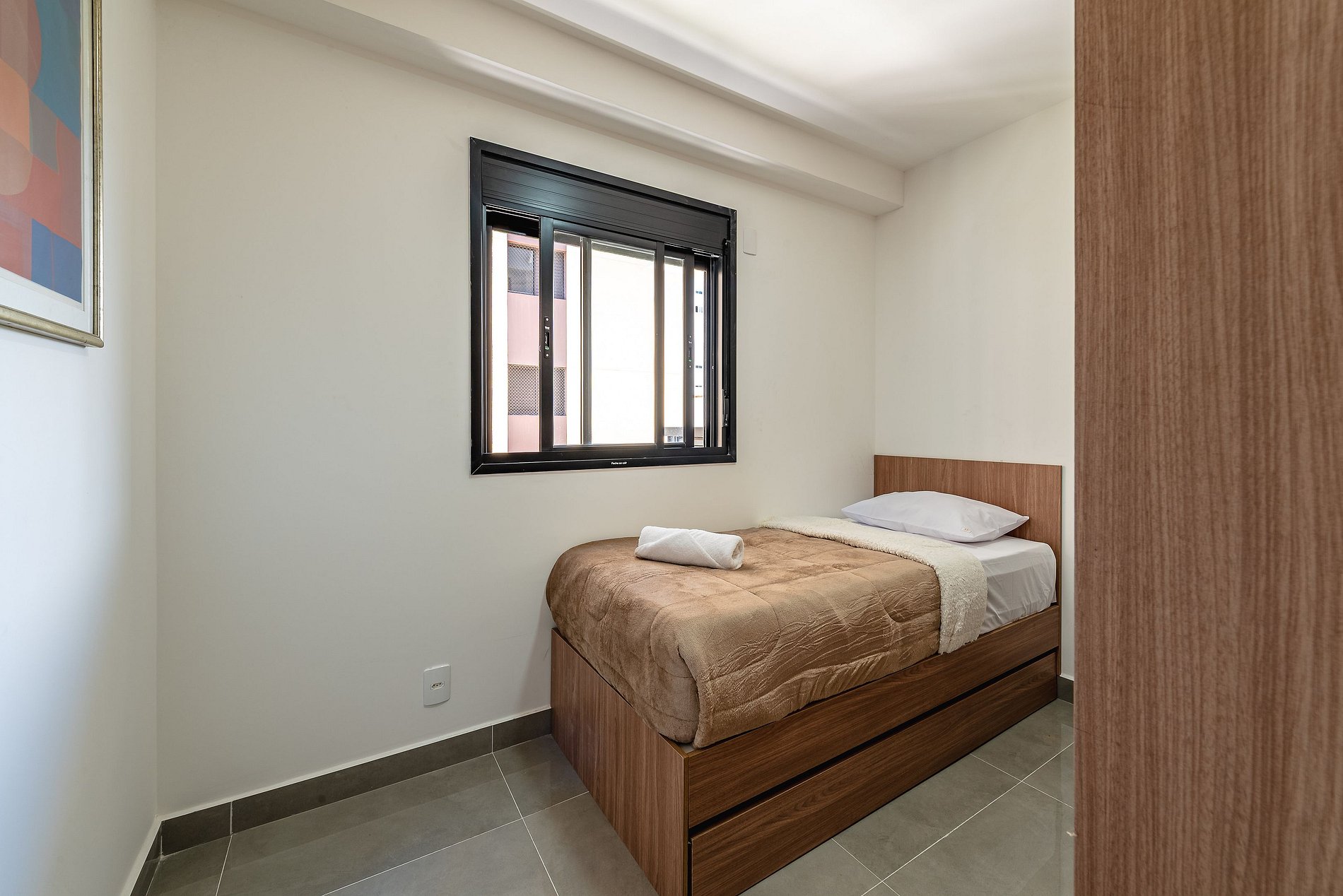 Tomada elétrica próxima à cama