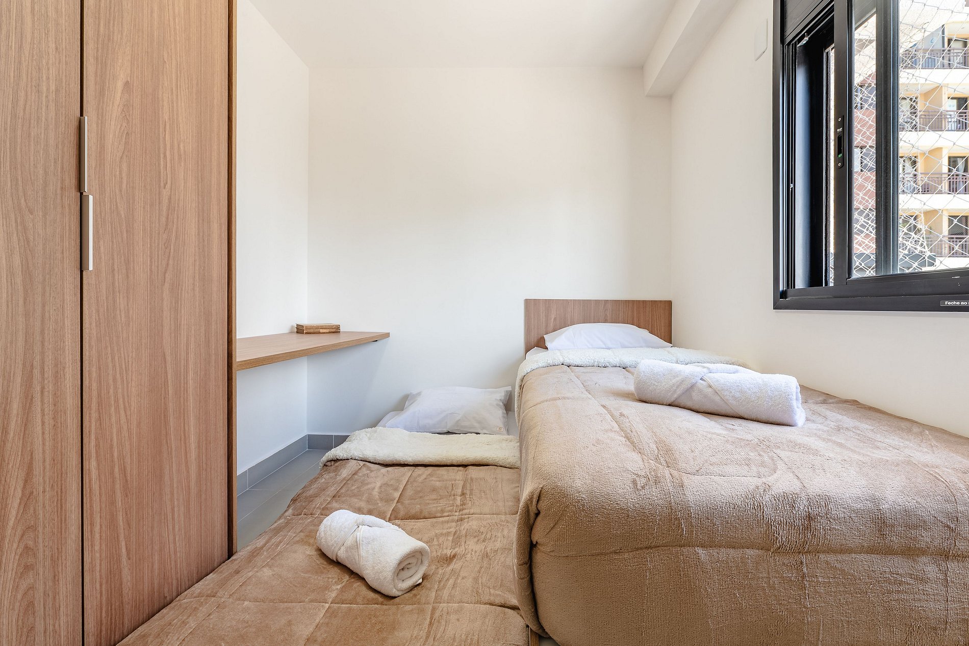 . 2 Camas solteiro com colchão padrão hoteleiro
