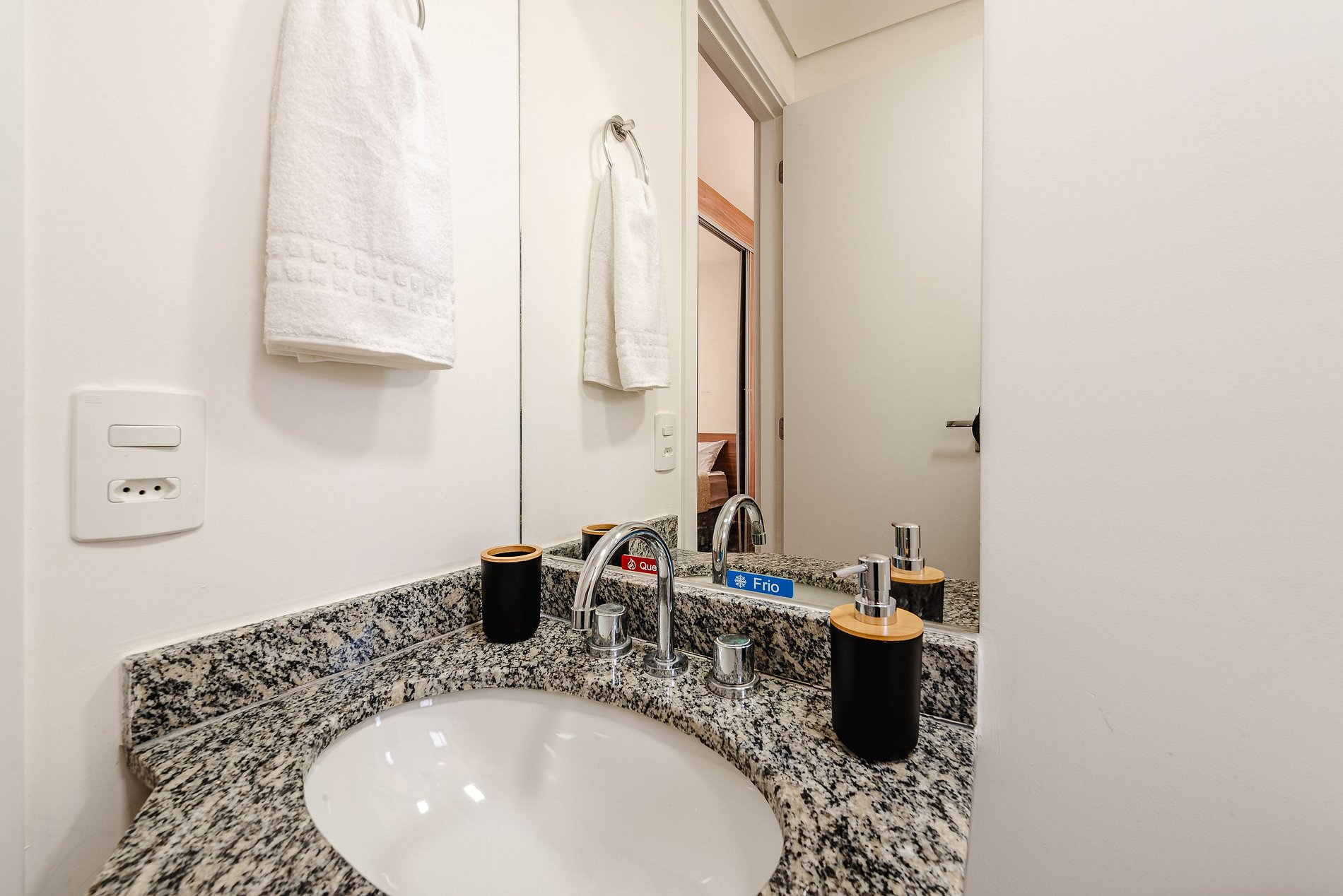Tomada elétrica próxima à cama