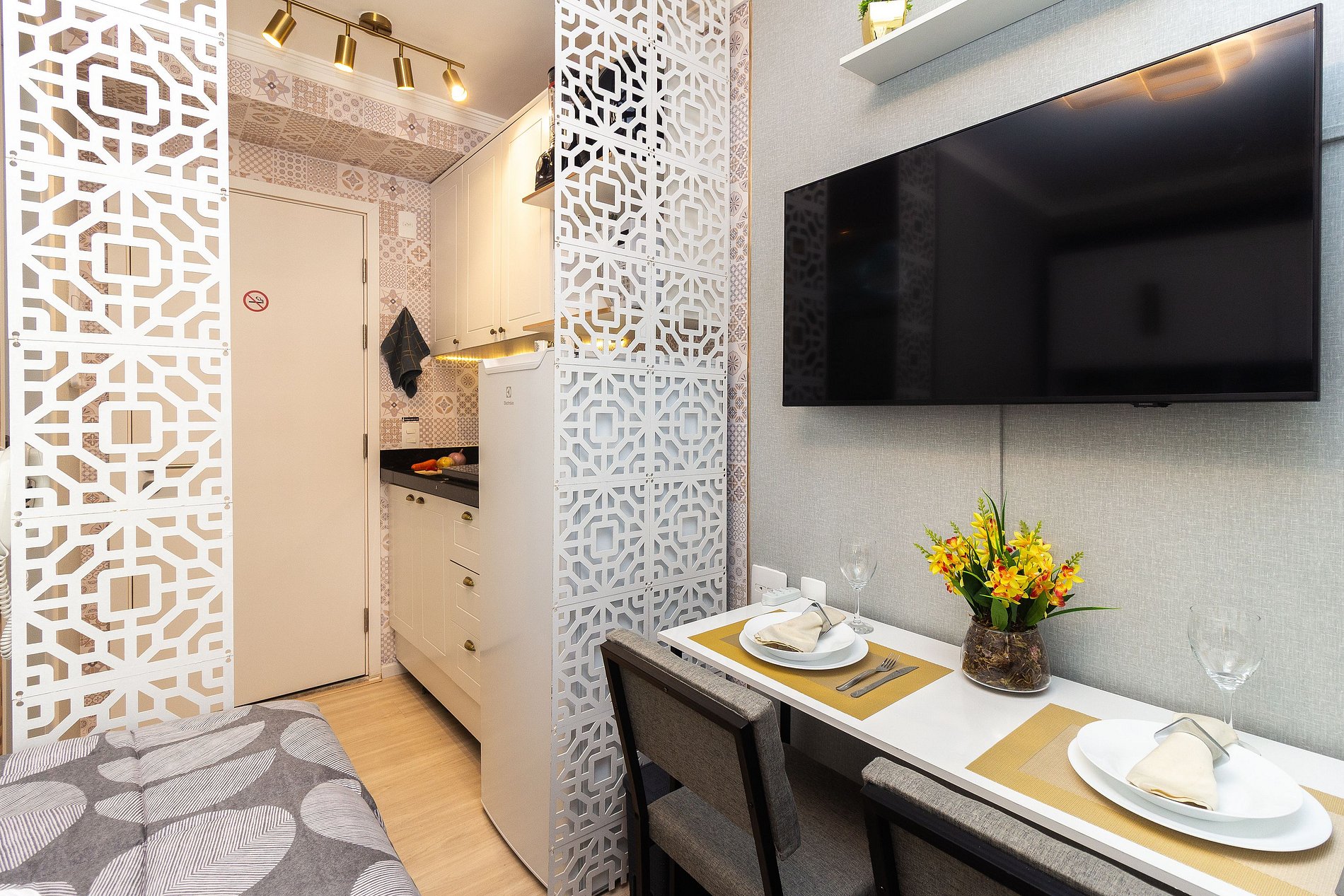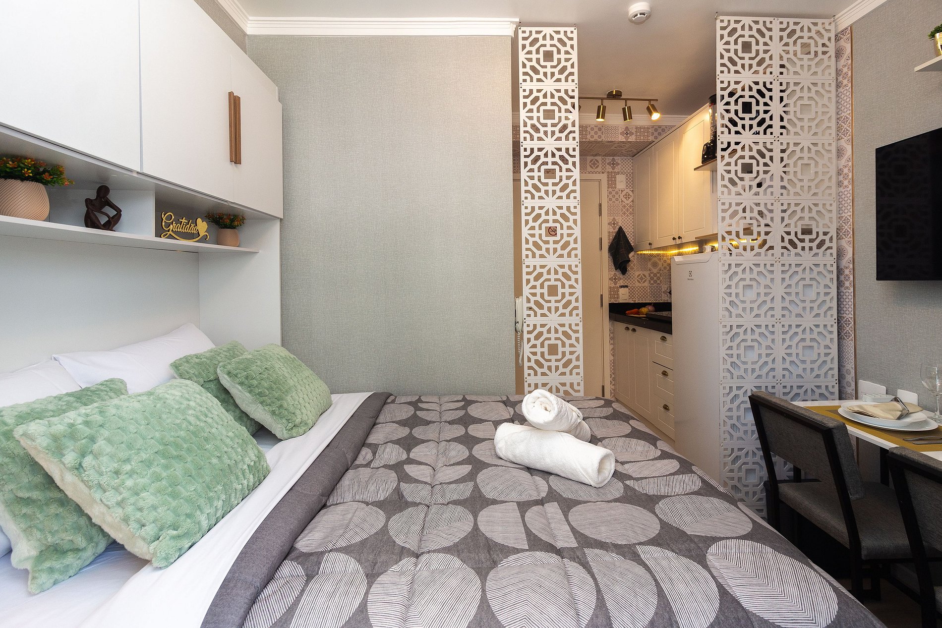 Este studio aconchegante foi pensado para oferecer uma estadia prática e confortável.