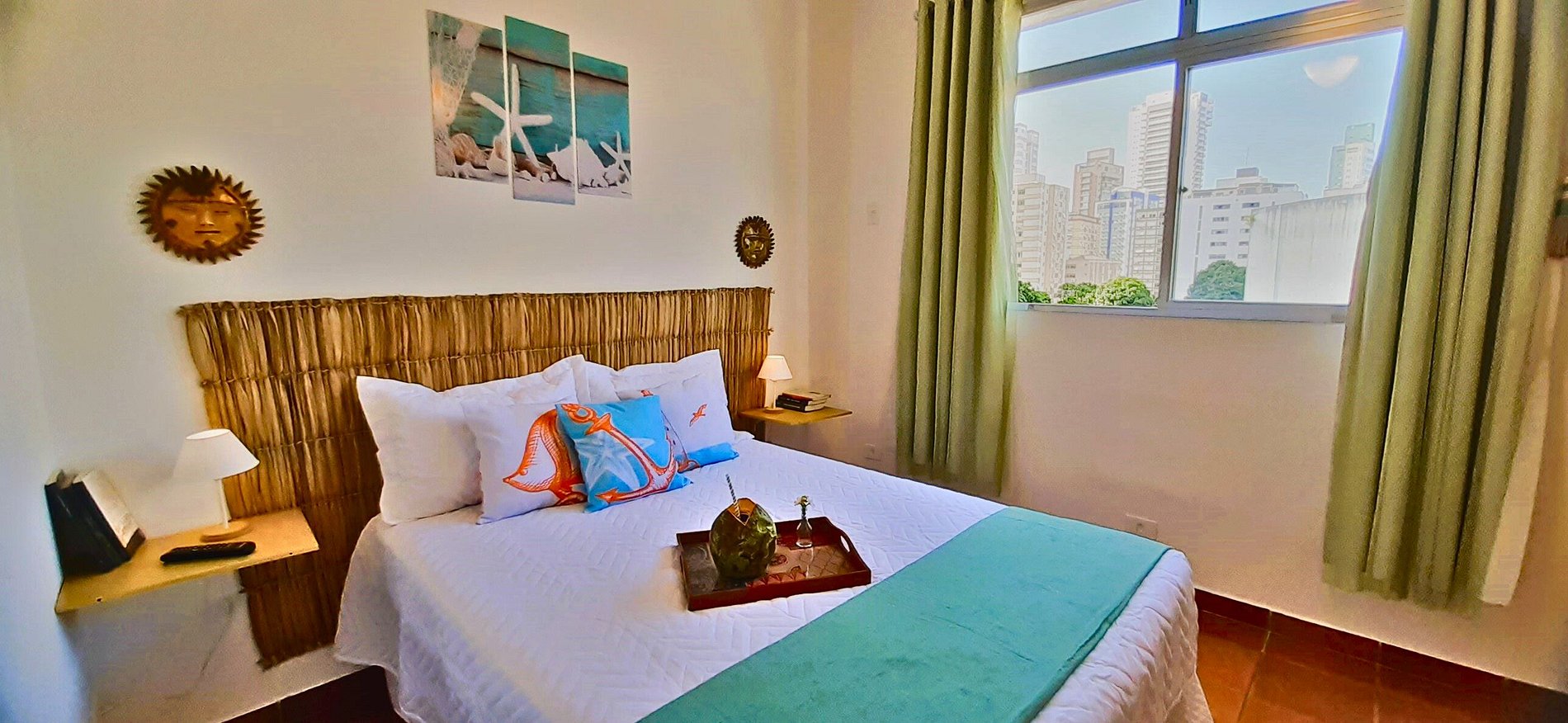 Apê de 50m² a uma quadra da Praia do Canal 5, com vista lateral para o mar.