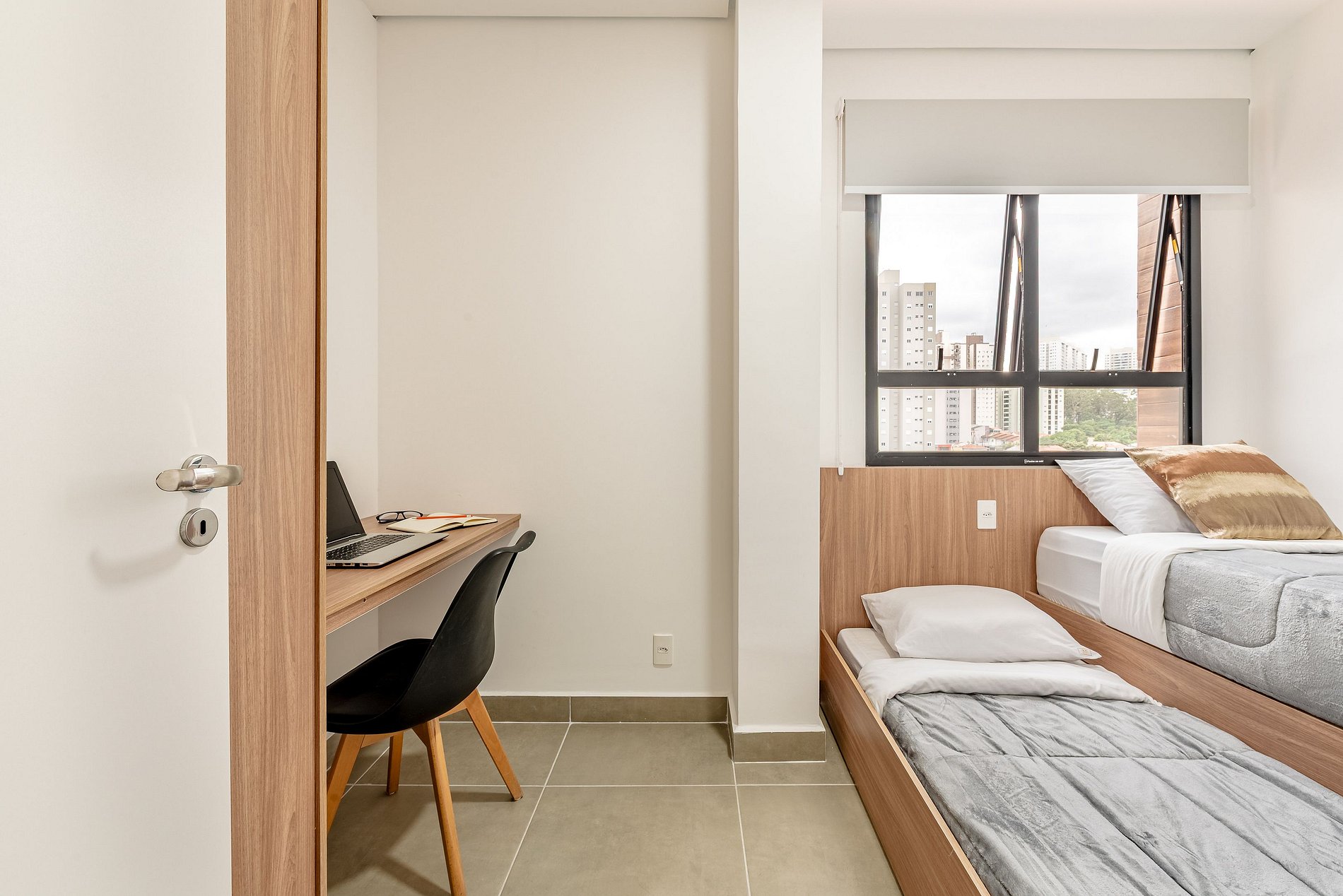 . 2 Camas solteiro com colchão padrão hoteleiro