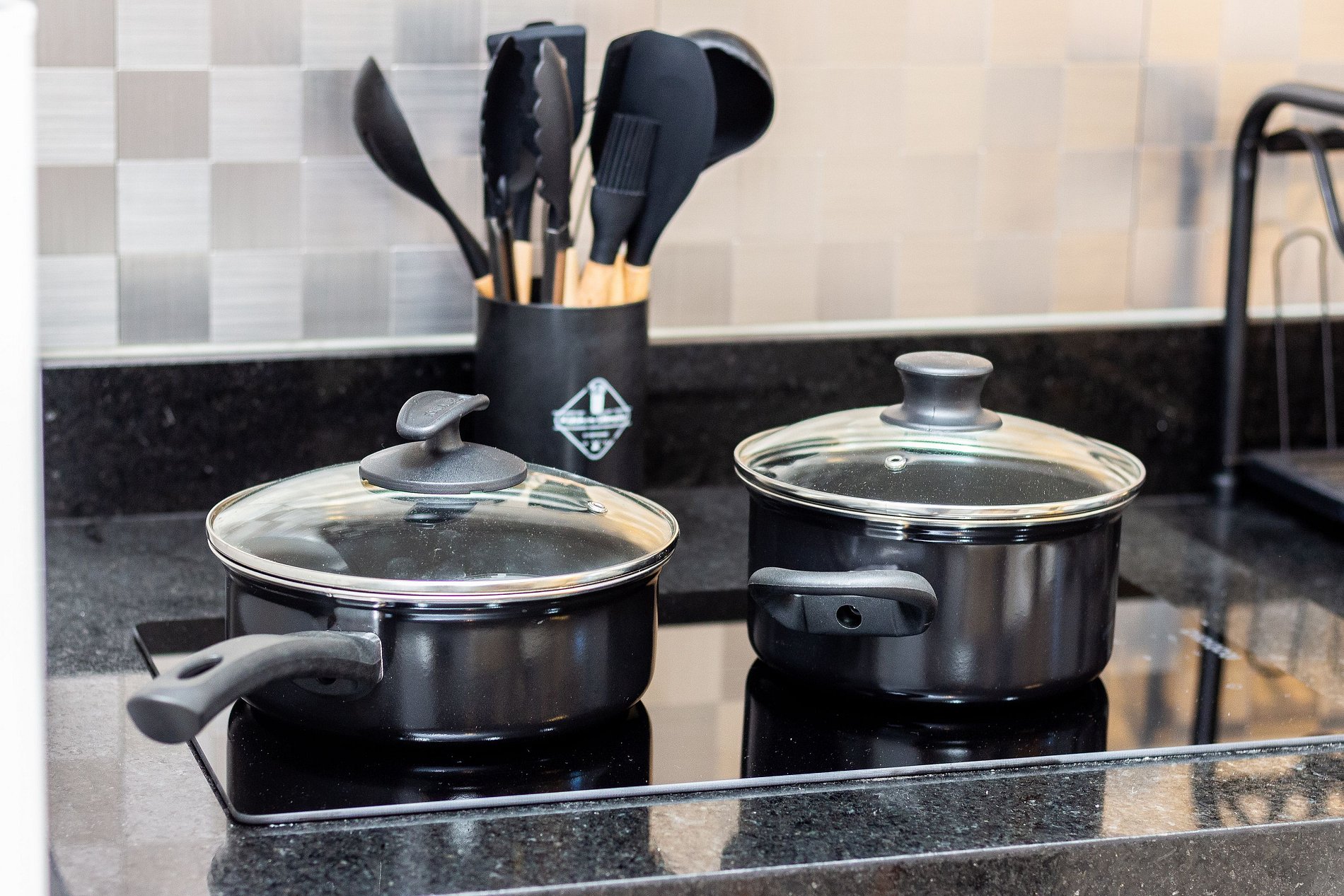 . Utensílios, panelas, pratos, talheres, taças de vinho e copos