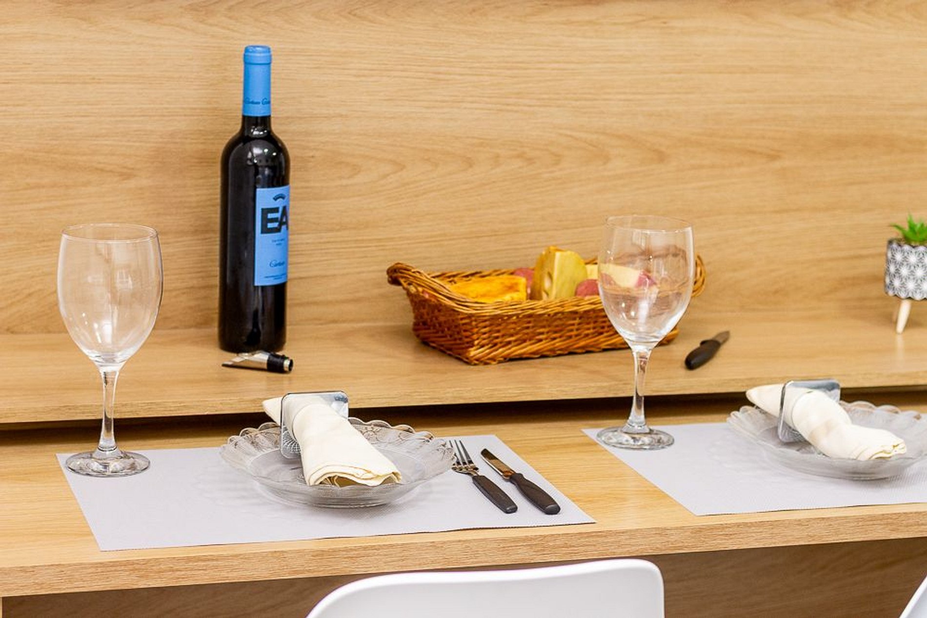 . Utensílios, panelas, pratos, talheres, taças de vinho e copos