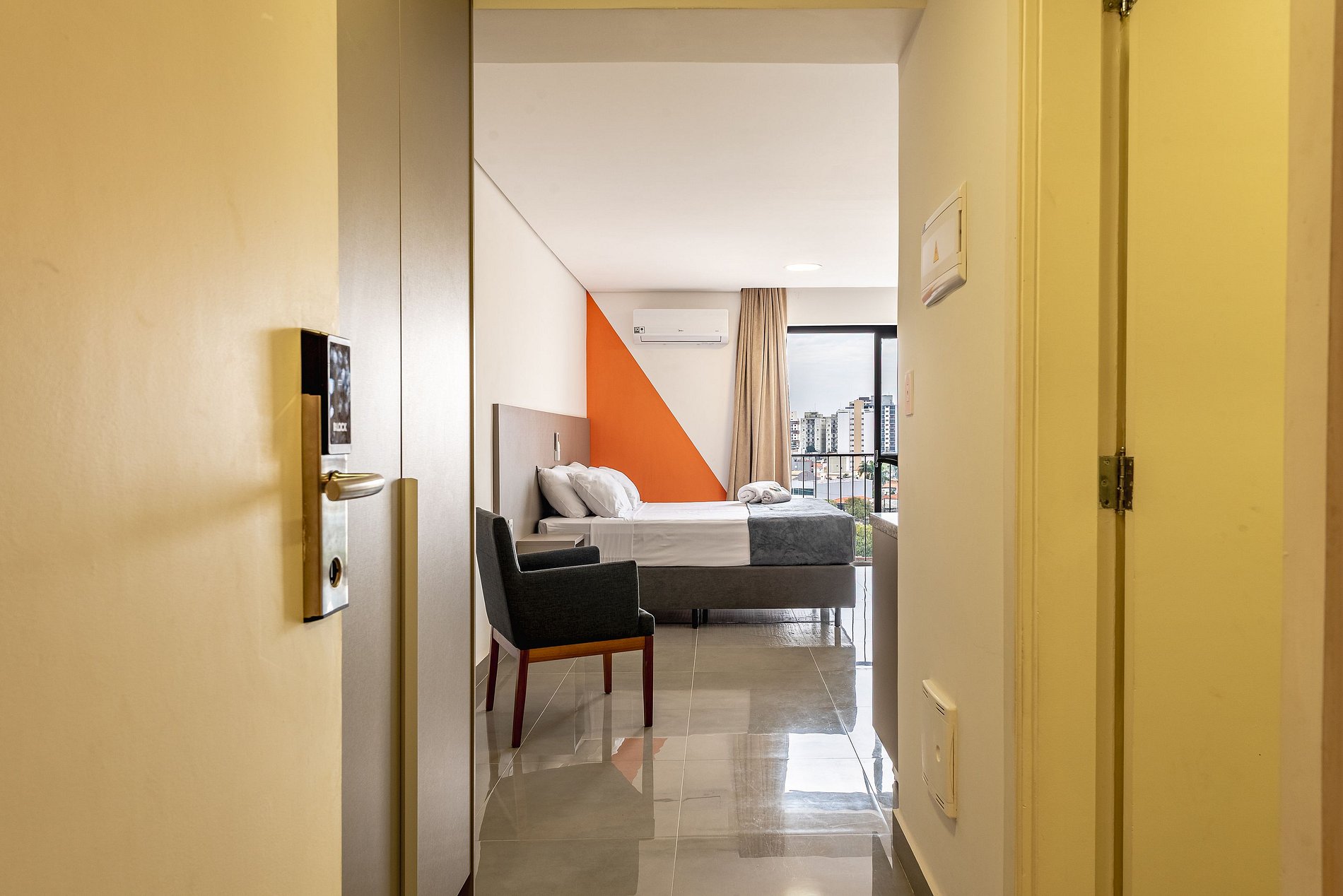 No momento da chegada, basta apresentar um documento oficial com foto para realização do cadastro facial. Após essa etapa, seu acesso estará liberado e você poderá entrar e sair livremente durante toda a estadia.